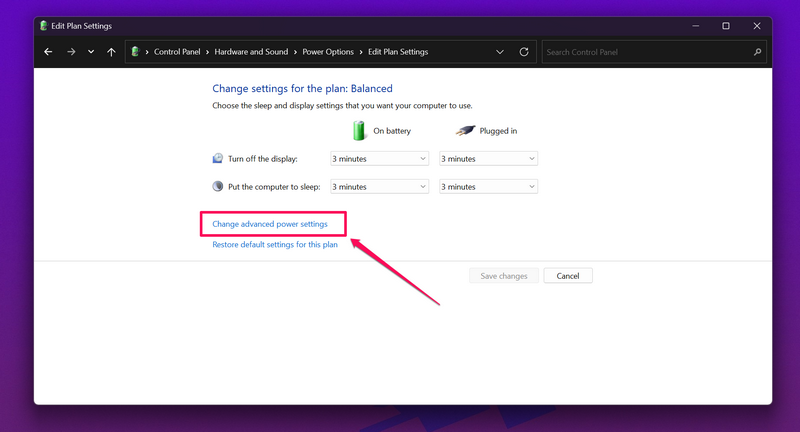 5。次のページで、をクリックします高度な電力設定を変更しますボタン。