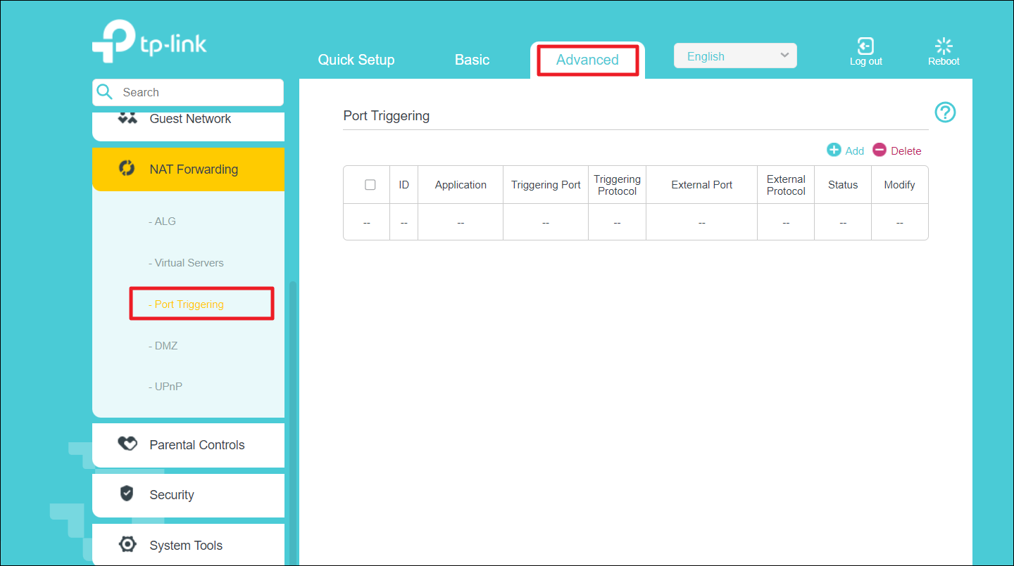 3。ポート転送'下の設定高度な設定して開きます。時々、ポート転送設定はNAT転送。