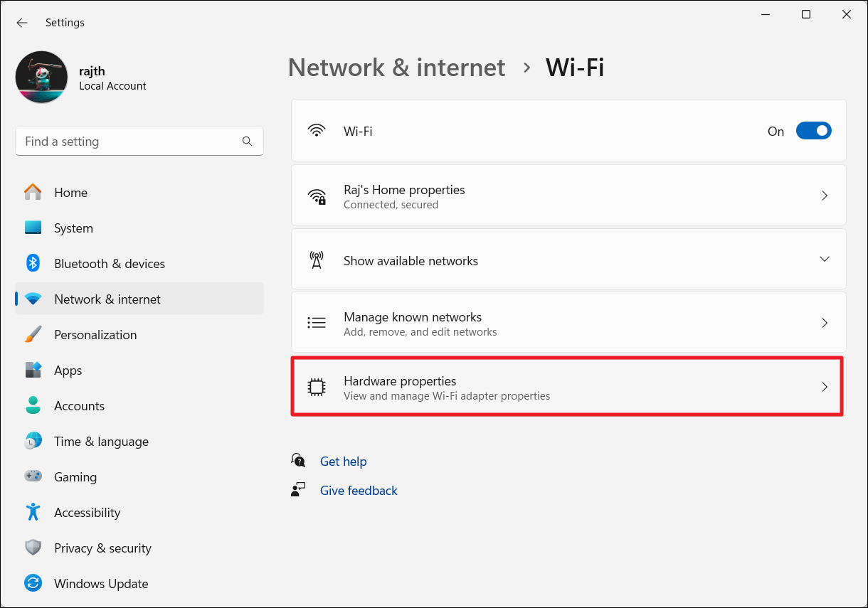 4。ネットワークとインターネット 'セクションと接続を選択します」イーサネット'または 'Wi-Fi 'そのプロパティを表示します。
