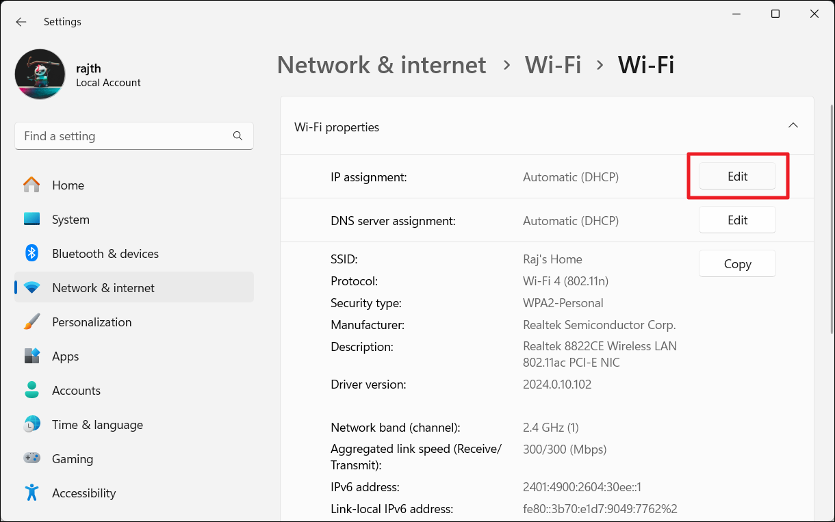6。クリックします '編集'IP割り当ての横にあるボタン。