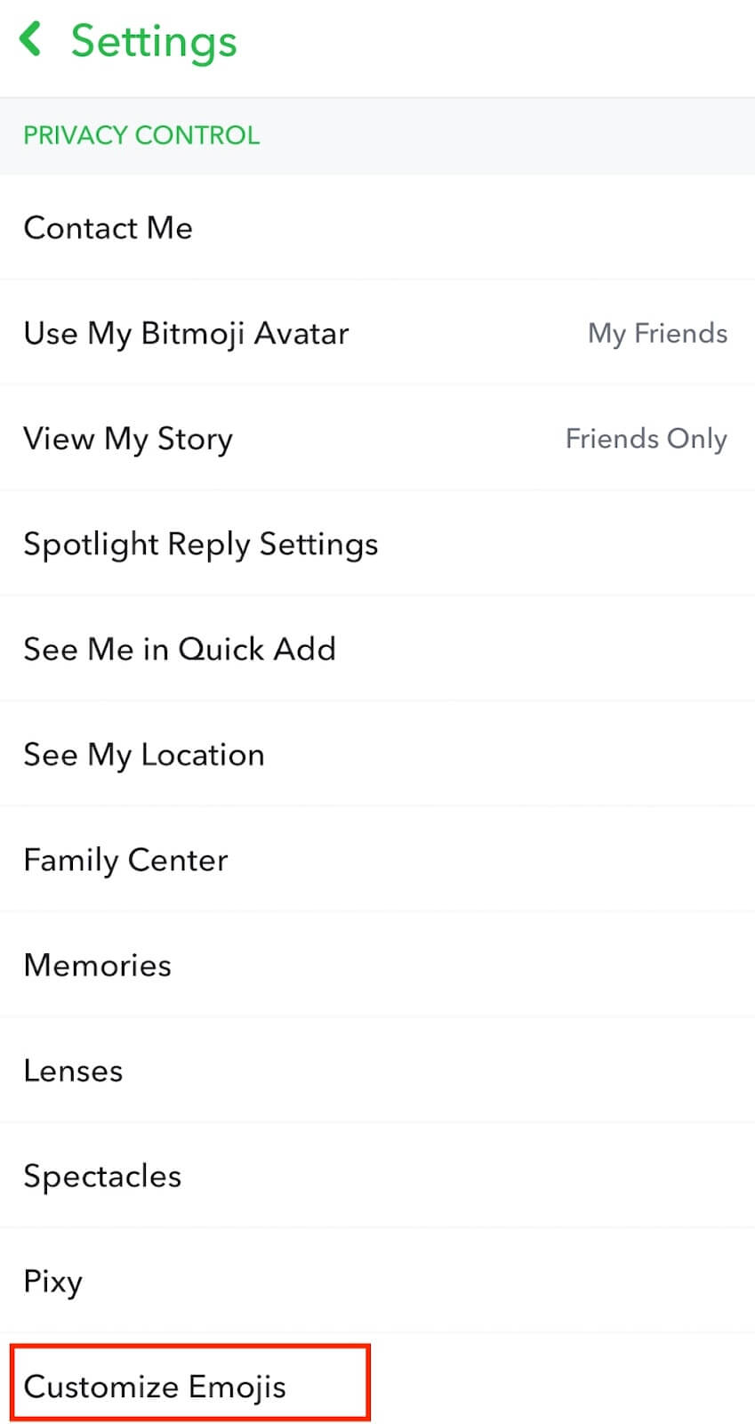 - Snapchatアプリでそれらが表すものを説明した絵文字のリストが表示されます。変更したい絵文字を選択し、カスタマイズします。