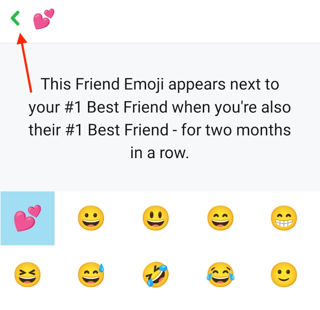- 新しいカスタム絵文字を選択した後、選択しますバックアローそれを保存するために。