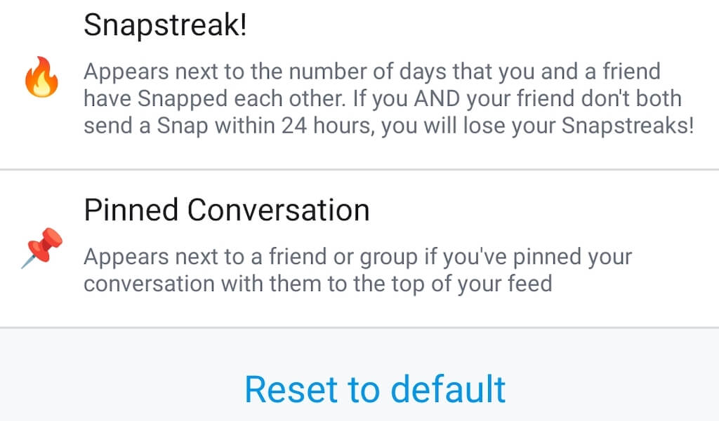相互のBFS、スーパーBFF、および相互ベストのスナップチャットの友人絵文字、およびスナップチャットストリークが砂時計やファイヤー絵文字のようにすぐに終わることを示すスナップストリーク絵文字があります。包括的なSnapchat絵文字ガイドでSnapchatで出くわすことができる絵文字の完全なリストを見つけることができます。