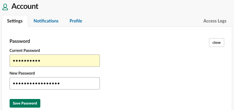 - あなたを入力してください現在のパスワード、 あなたの新しいパスワード、そして選んでくださいパスワードを保存します。