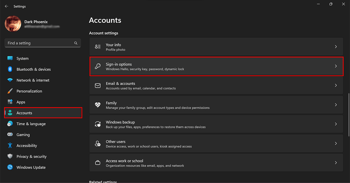 - クリックしてくださいアカウントをクリックしますサインインオプション。