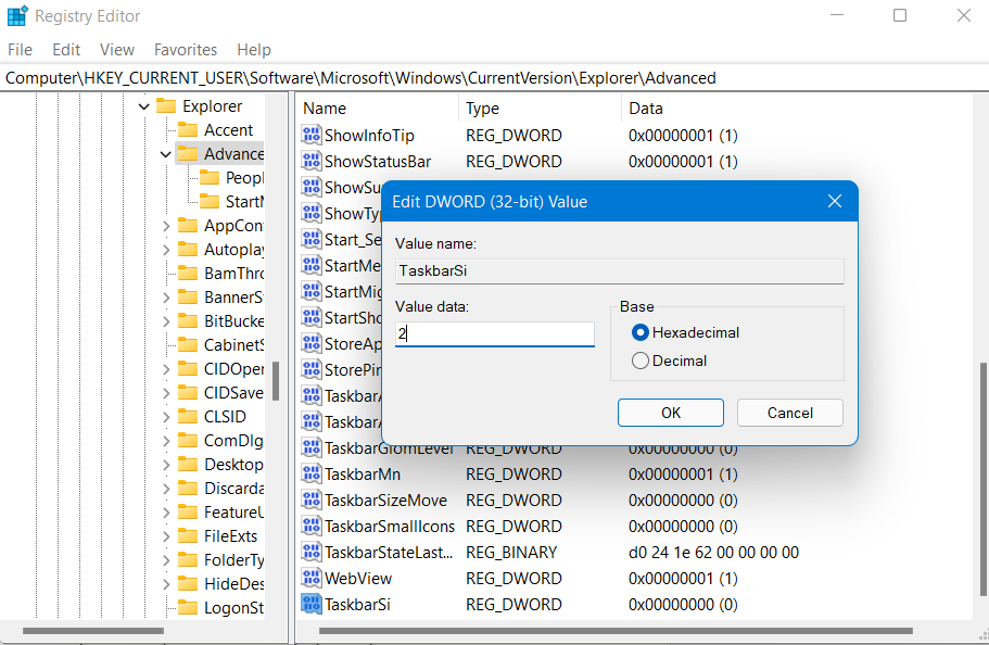したがって、これは、レジストリの調整を使用して、Windows 11のタスクバーアイコンサイズを変更する方法です。