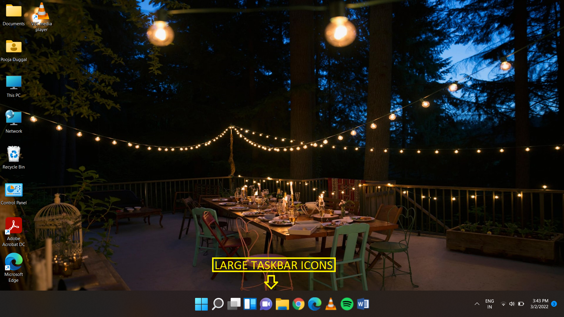 上記のように、タスクバーのアイコンのサイズは現在大きくなります。