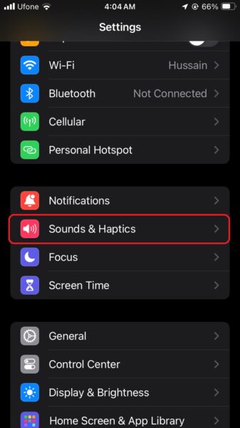 - 下にスクロールしてタップしますサウンドとハプティックス。