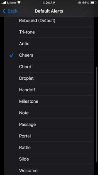 - アラートトーンのリストが表示されます。デフォルトの通知サウンドとして設定するものを選択します。自分の好みに合った完璧なトーンを見つけるまで、さまざまなトーンを自由に探索してください。