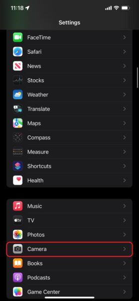 - 下にスクロールしてタップしますカメラ[設定]メニュー。