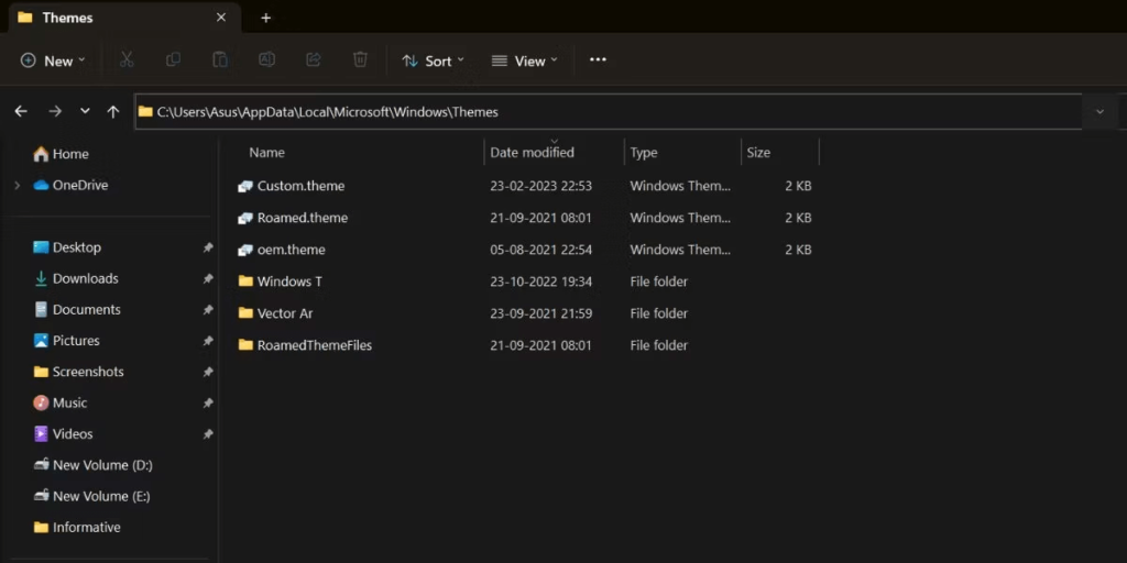 Windows AppDataフォルダーには、Windows 11システムに現在インストールされているすべてのテーマがあります。ファイルエクスプローラーを使用して、フォルダーにアクセスしてから、システムにテーマを適用できます。これが方法です: