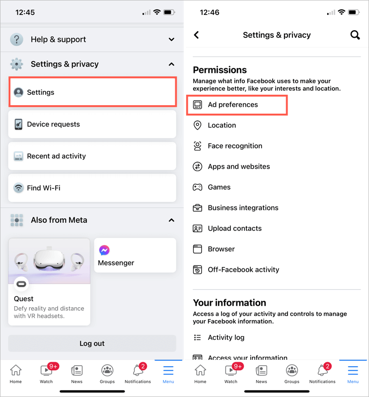 FacebookのWebサイトであろうとモバイルアプリであろうと、広告の設定にアクセスして変更できます。