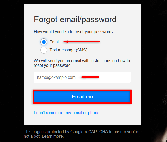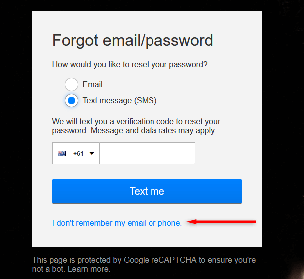 注記:パスワードを忘れた場合は、クリックしてくださいパスワードをお忘れですか?またはパスワードをお忘れですか?次に、プロンプトに従って、電子メールまたはテキストでリセットします。これについては、以下の詳細です。
