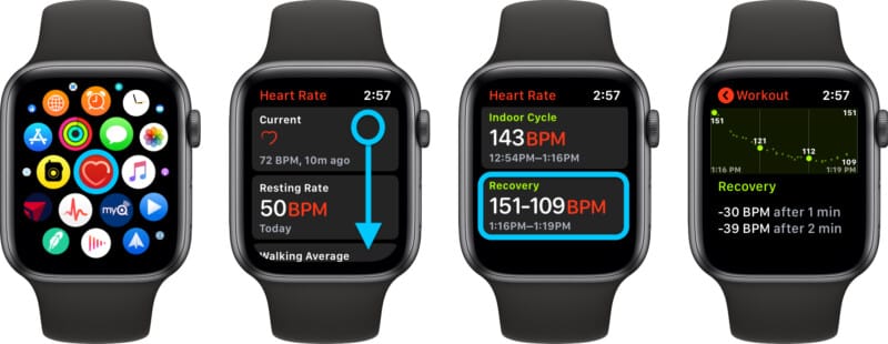 それでは、Apple WatchとiPhoneで有酸素運動または心拍数が回復するのを確認しましょう