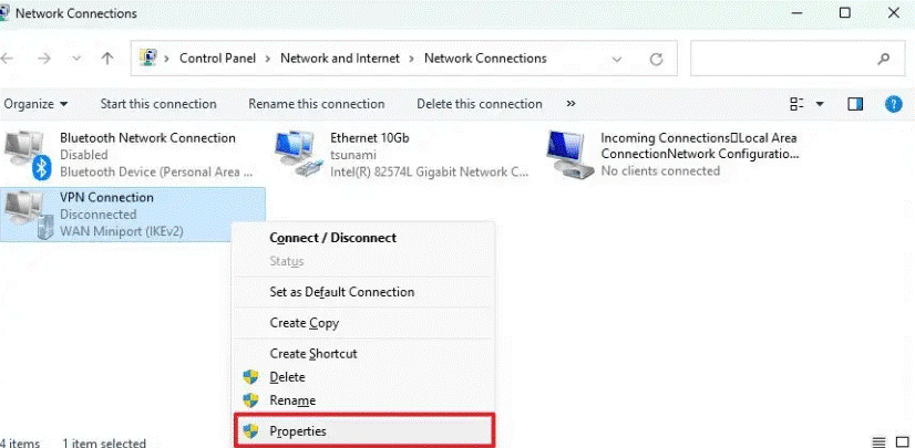 ステップ5:でアダプタータイプセクション、クリックしますプロパティボタン。