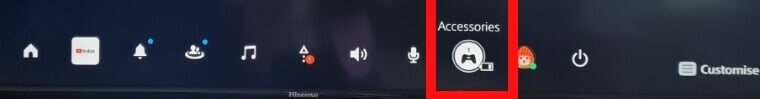 - 画面の下部で、正しいスティックまたは右ボタンを使用して選択しますアクセサリーコントロールセンターのアイコンから(コントローラーのように見えます)。
