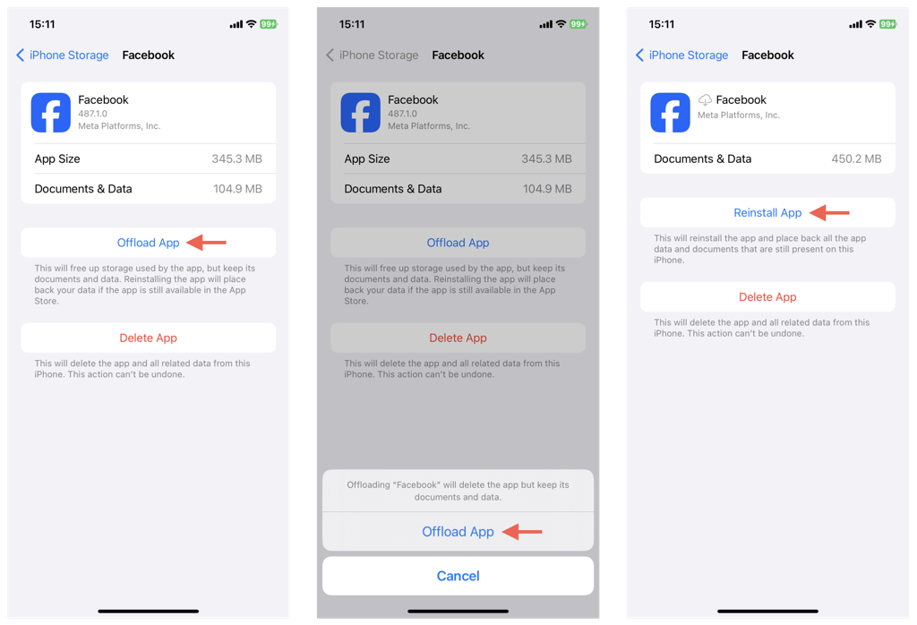 iPhoneでFacebookをオフロードして再インストールするには: