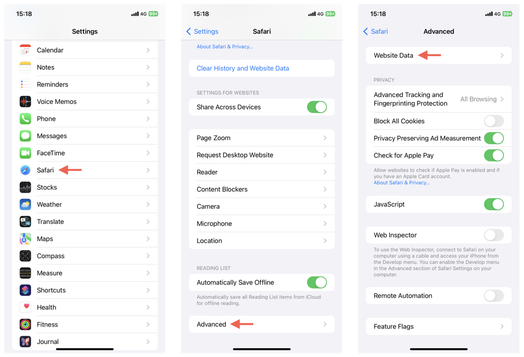- 行きますサファリ>高度な>ウェブサイトデータ。
