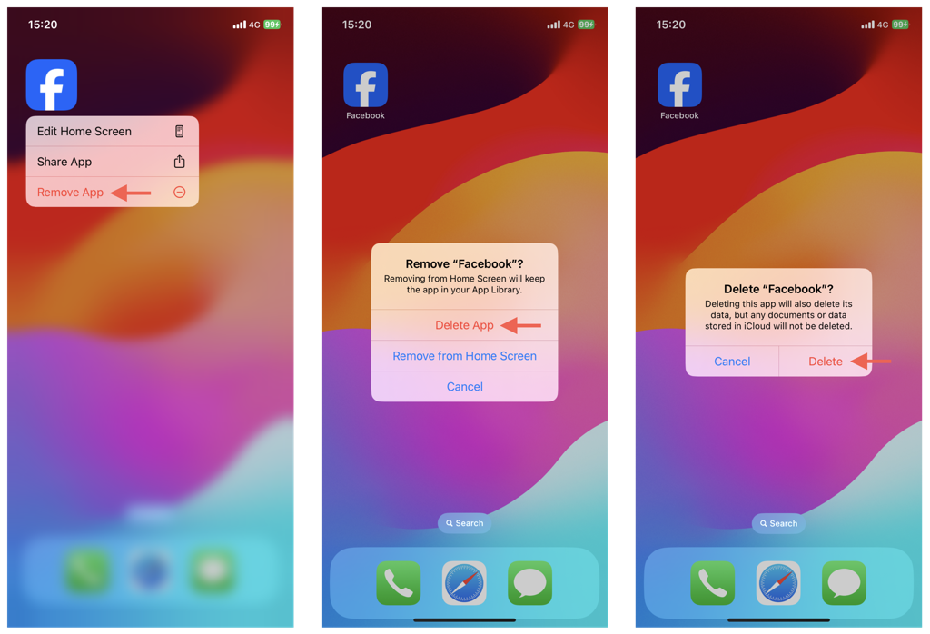 アプリをアンインストールしてiPhoneでFacebookキャッシュをクリアする方法