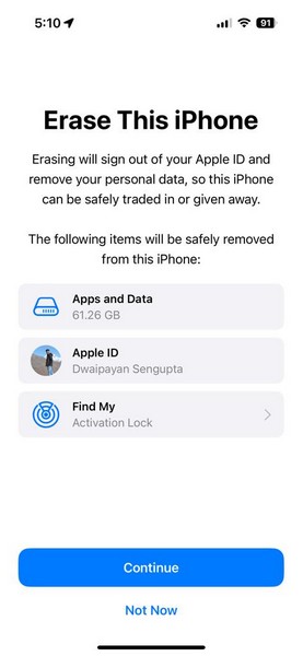 そのため、先に進んでiPhoneのすべてのコンテンツを消去する前に、すべての必需品を含むデバイスのiCloudバックアップを取得することをお勧めします。そうは言っても、下の手順に従って、iOSのすべてのデータと設定を消去できます。