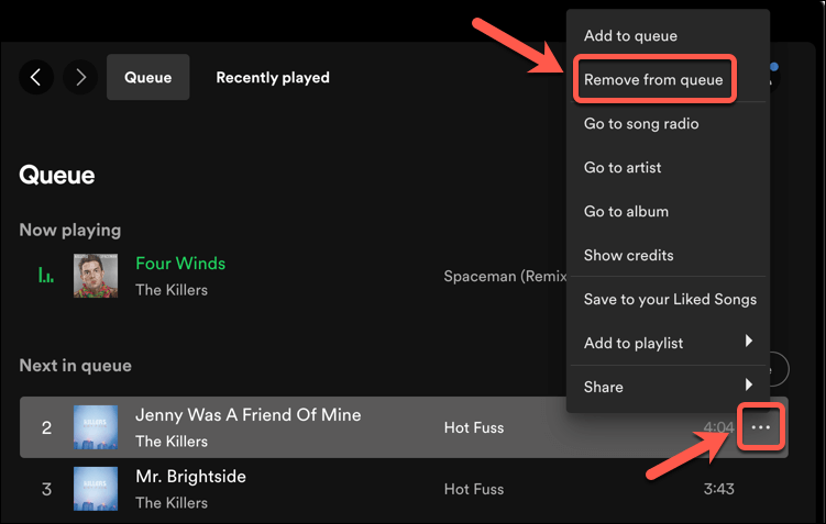 - キューから個々のアイテムを削除するには、3ドットメニューアイコンアイテムとプレスの隣キューから取り外します。これにより、他のアイテムはそのまま残ります。