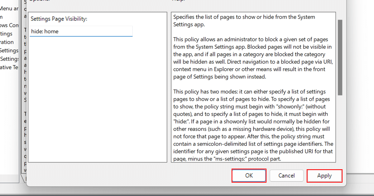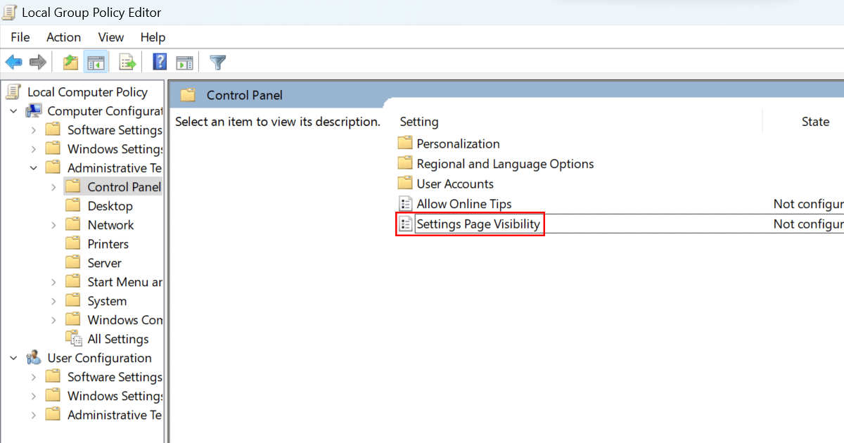 - 「」をダブルクリックします。設定ページの可視性" ポリシー。
