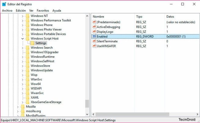 また、このファイルVisual Basic Scriptを実行するには、システム内のWindowsスクリプトホストを有効にしたことを知っておくことも重要です。これを確認するには、Windowsレジストリを開き、コマンドRegeditを実行してパスに移動する必要がありますhkey_local_machineソフトウェアMicrosoft Windowsスクリプトホスト設定。