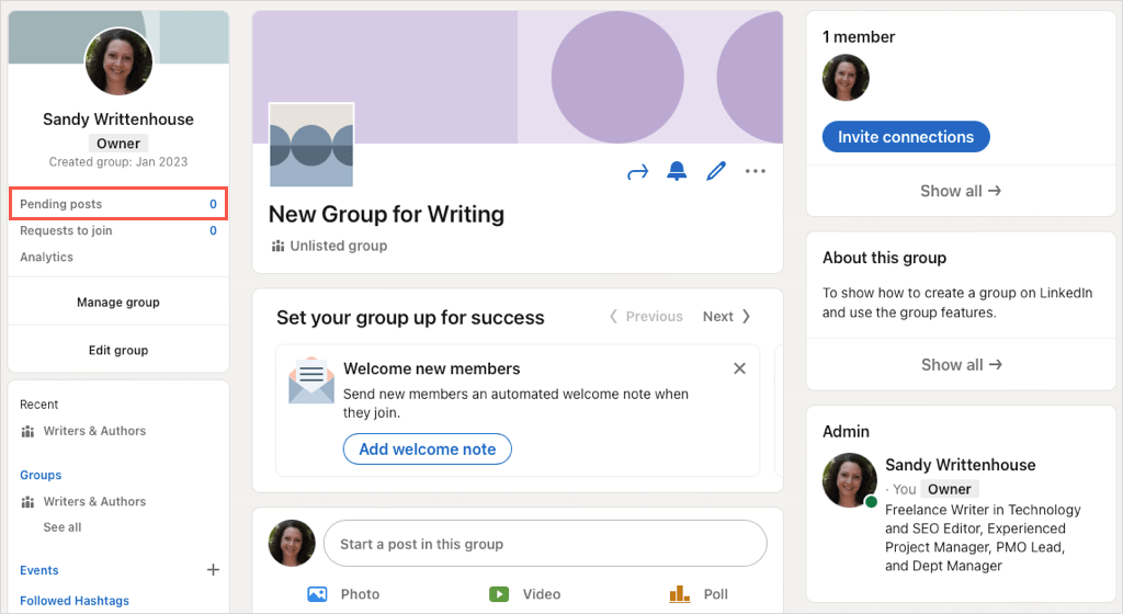 LinkedInグループを作成したら、メンバーを招待したり、グループを編集したり、保留中の投稿を表示したりすることができます。あなたのグループのホームページにアクセスして始めましょう。