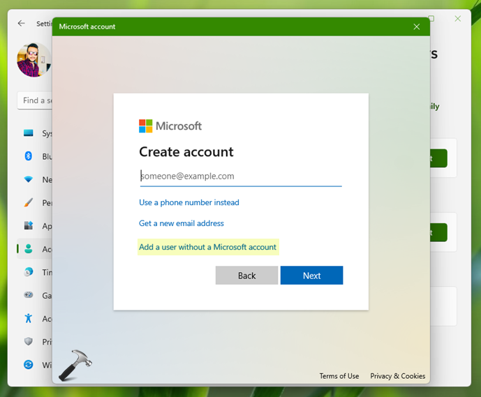 4。次の画面で、クリックしますMicrosoftアカウントなしでユーザーを追加します。