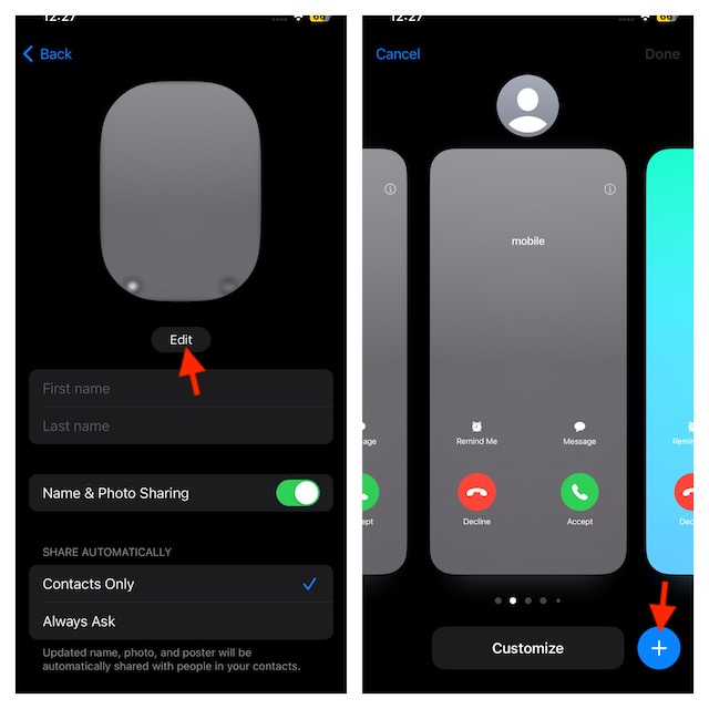 - その後、タップします編集現在の連絡先ポスターの下部に表示されるボタン。