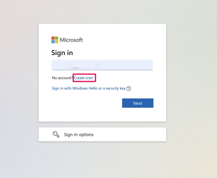 4。プロンプトの次のサインで、クリックします作成してください!新しいMicrosoftアカウントの作成を開始するボタン。