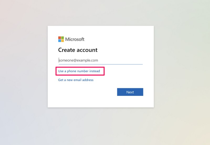 5。今、あなたはできます既存のメールアドレスを使用してください、あなたの電話番号新しいMicrosoftアカウントを作成します。