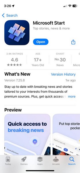 1。AndroidまたはiOSデバイスで、MicrosoftアプリケーションをインストールしますからプレイストアまたはApp Store。このデモのために、私は新しいものをインストールしましたMicrosoft StartiPhoneのアプリ。 Outlook、Word、OneDriveなどの1つまたは他のMicrosoftアプリをインストールできます。