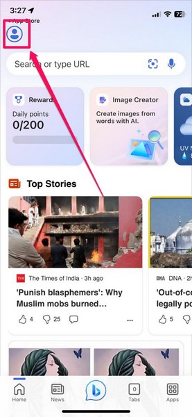 3。次に、タップしますアカウントボタン画面の左上隅に。ほとんどのMicrosoftアプリの場合、アカウントボタンは同じ位置にあります。