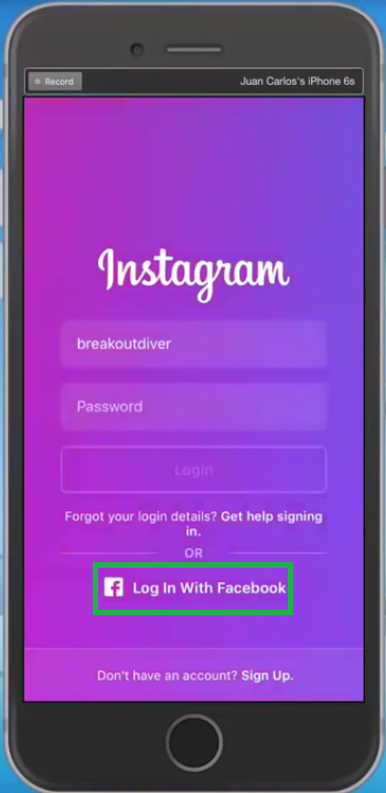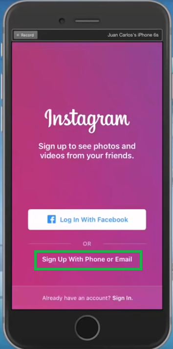 iPhoneユーザーの場合は、「」をクリックします。電話または電子メールでサインアップ」オプション。電子メールまたは電話番号を使用してInstagramに参加したい場合。電子メールの電話番号を使用する代わりに、「」をクリックしてInstagramアカウントを作成することもできます。Facebookでログインする」ボタン。