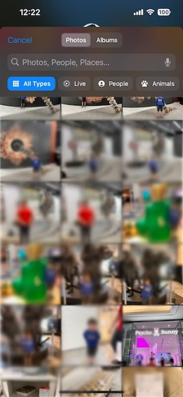 - タブ内の「+」ボタンを選択して、ステッカーになっているすべての写真を表示します。写真は、ライブ、動物、人、車両、食べ物などに分類され、選択を容易にします。