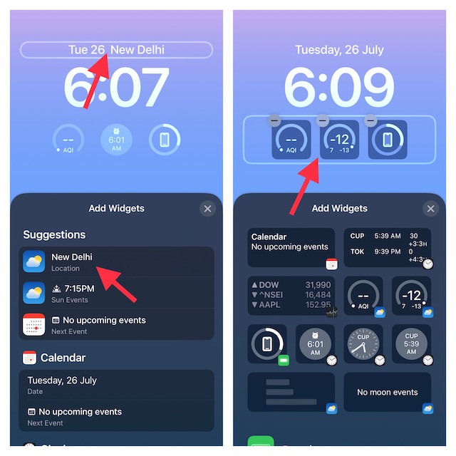 日付と日付の読み取りの間の時間を超える気の利いたウィジェットを表示することもできることに注意してください。タップするだけです日付と日付の読み取りウィジェットセレクターを表示し、追加するウィジェットをタップします。