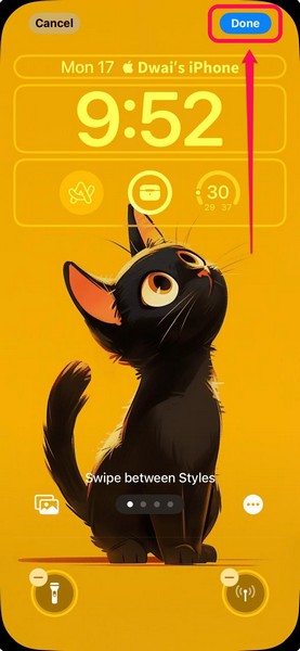 12。iPhoneロック画面の選択したクイックアクションボタンスペースに新しいコントロールを削除および/または追加したら、タップします完成したボタン変更を節約するために、右上のコーナーで。