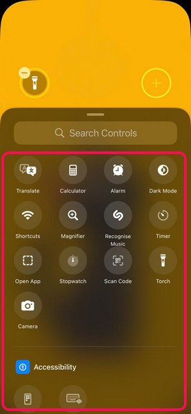 9。あなたもできます上の検索バーを使用して、特定のコントロールを見つけるロック画面にクイックアクションボタンとして追加します。