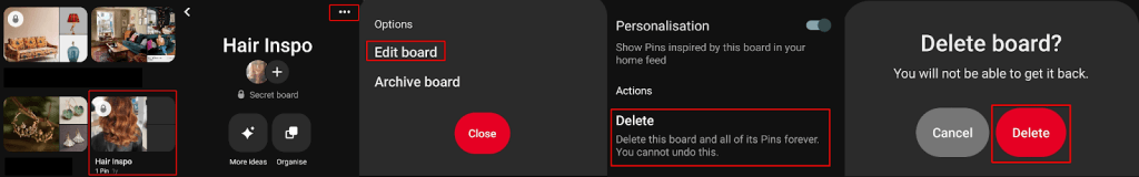 iOS/AndroidアプリでPinterestでボードを削除する方法