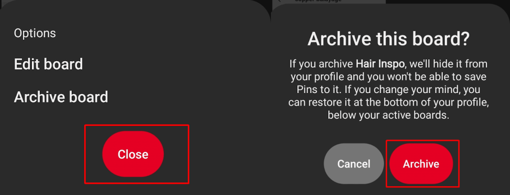 Pinterest iOS/Androidアプリでボードをアーカイブする方法