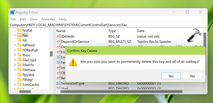 レジストリキーが削除されたら、システムからサービスを削除する必要があります。システムを再起動して変更を効果的にすることができます。