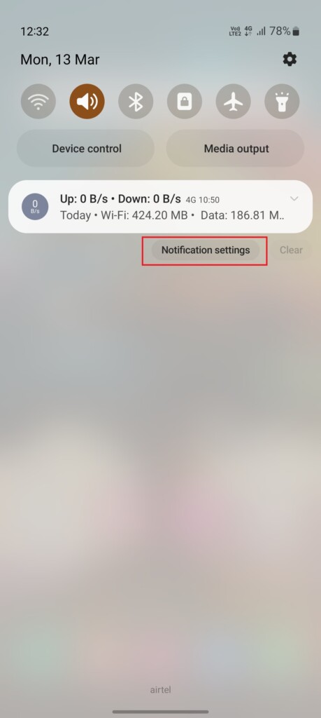 1。開きます通知パネルSamsungデバイスで、画面の上部から下部にスワイプします。