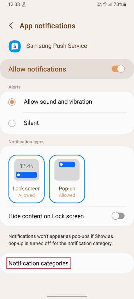 4. Samsung Push Serviceからのマーケティング通知を停止します
