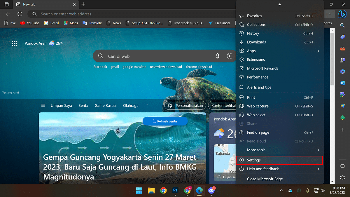 - 開けるMicrosoft Edge>クリックします設定(3点型)右上隅のボタン。