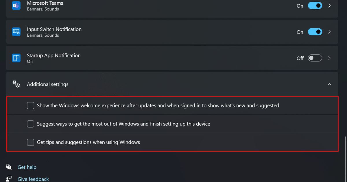 - 次のスイッチを切り替えるWindowsを使用するときにヒントと提案を入手してください。」
