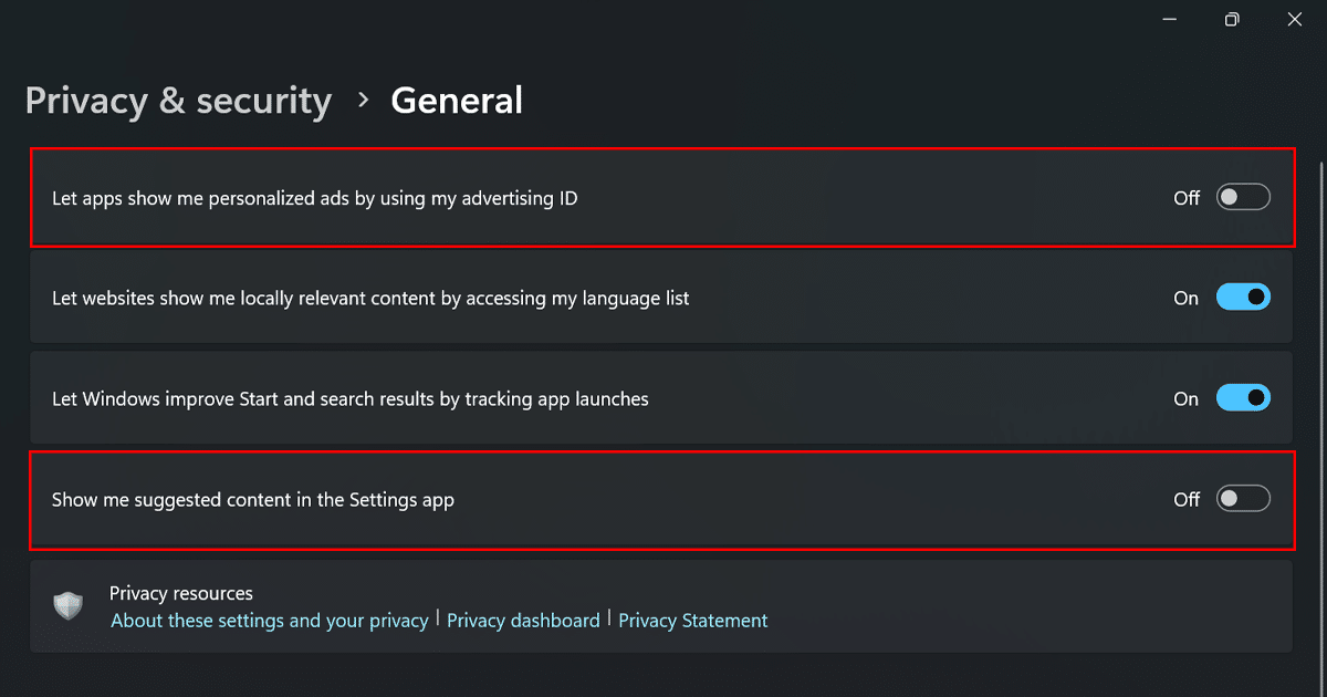 - これらの手順は、Windows 11のほとんどの広告を無効にしますが、広告がまだ表示される可能性のある場所がいくつかあります。これらの広告を無効にするには、次の手順に従うことができます。