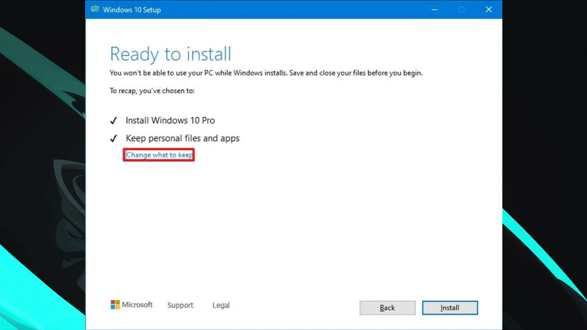 - オプション:ファイルやアプリを失いたくない場合は、インストールボタン。
