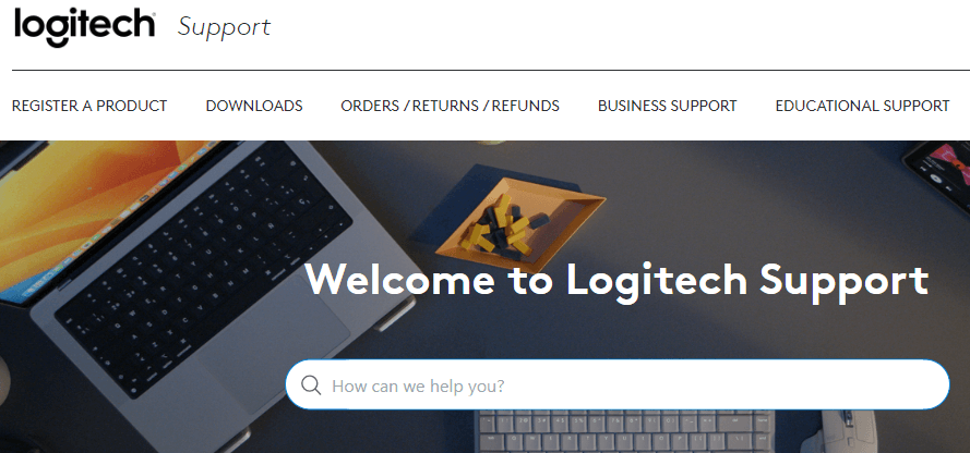 ステップ4:新しいタブが「Logitechサポートへようこそ」というタイトルの検索バーで開きます。