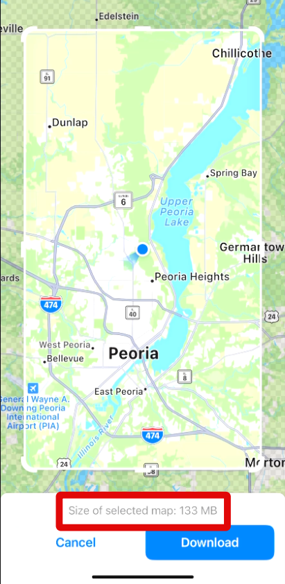 15。画面の下部にあるマップのダウンロードサイズを確認できるはずです。